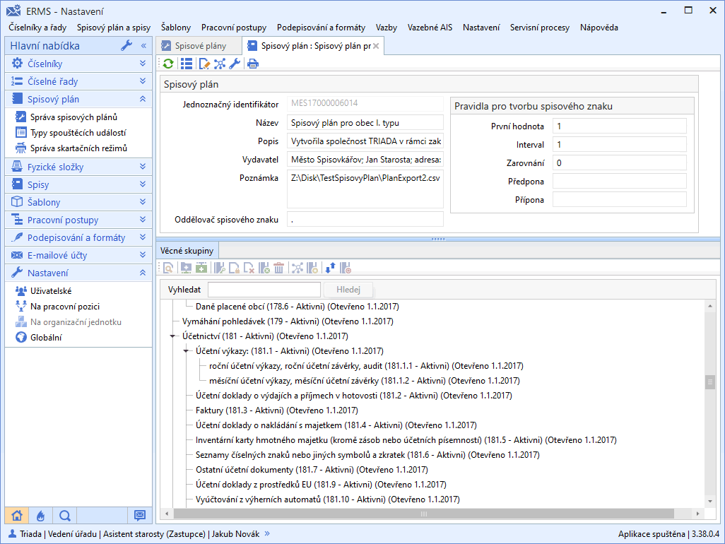 - A konečně je možné použít vhodný vzorový spisový a skartační plán, ať již z dílny Ministerstva vnitra nebo některého z oblastních archivů, který umíme technicky konvertovat do podoby, kterou lze načíst do elektronického systému spisové služby.